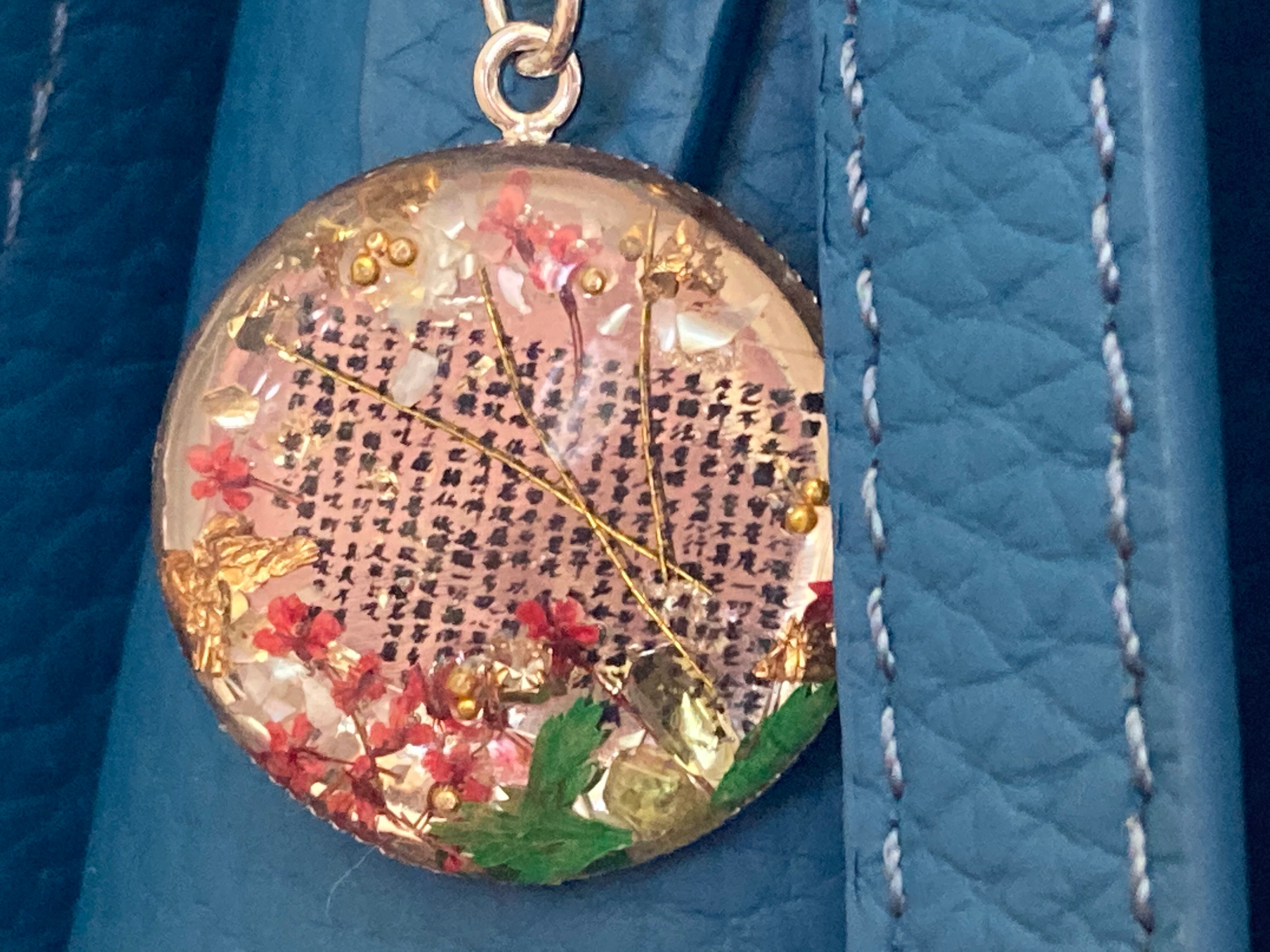 チャームには般若心経の262文字を入れています。一文字ずつ心を込めて書きました。