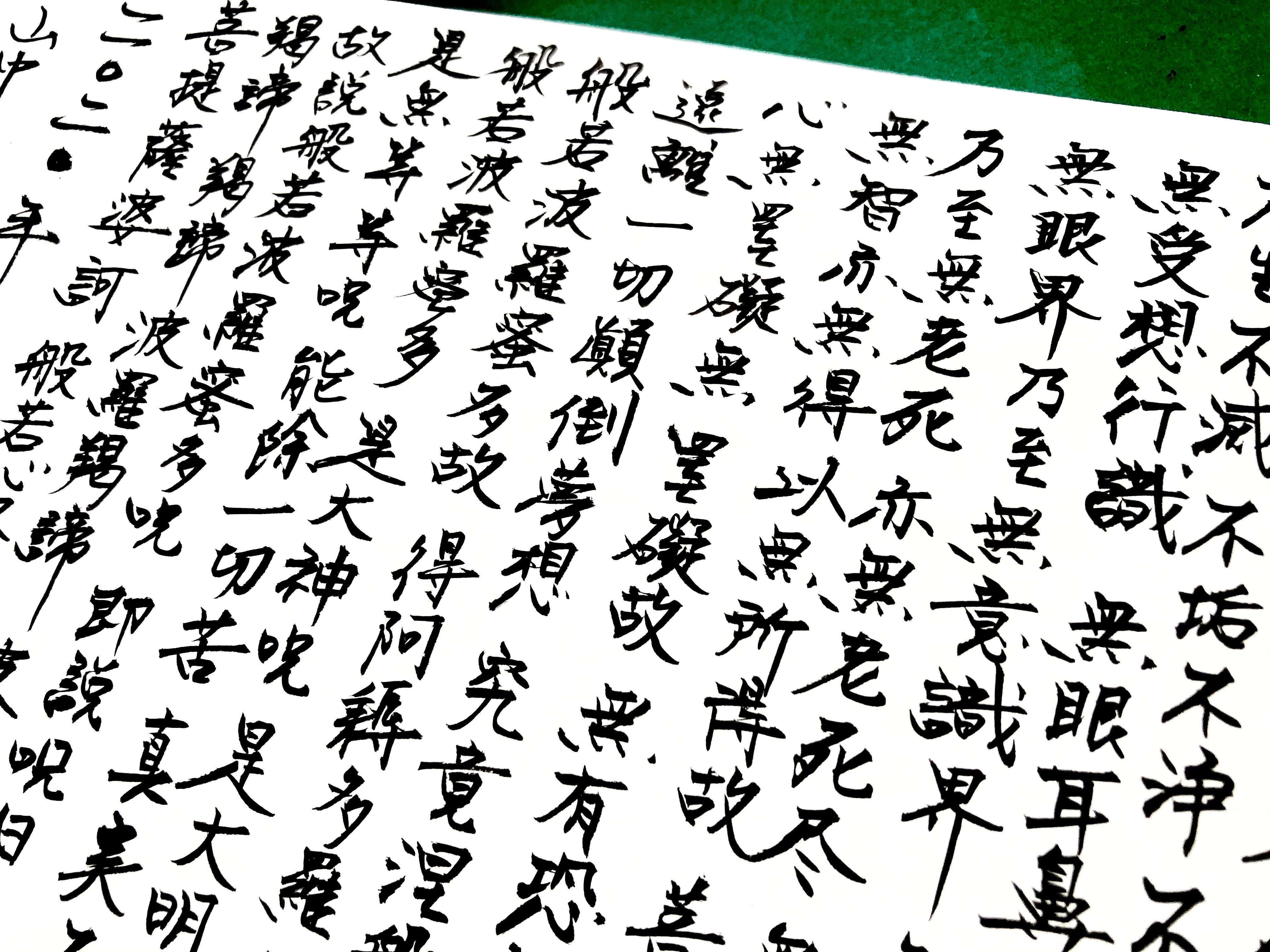 三蔵法師がインド経典をとりにいく苦難連続の旅で観世音菩薩さまからこの、般若心経を唱えればどんな災いや病気から守られますよ、と教えをいただいた、という尊いお経です。